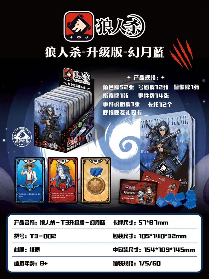 JMT3-002狼人杀-T3升级版-幻月蓝5个/盒
